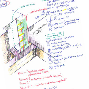 - Sospensione strutturale del sistema fondale di edifici esistenti. La metodologia di tensione progressiva attraverso trefoli di acciaio permette l'operatività al di sotto del fabbricato oggetto di intervento. Questa è la possibilità di realizzazione di porzioni od interi piani interrati non previsti dagli originari progetti architettonici.